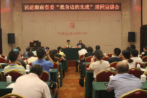 [民进常德市委 李勇义] 7月30日,民进湖南省委“我身边的先进”巡回宣讲会在新亚柳叶国际大酒店举行,全市在职会员参加会议。民进省委副主委、湖南师大文学院教授汤素兰作了题为《传承和奉献》的主题报告。民进常德市委主委、常德汽车机电学校校长张力主持巡回宣讲会。