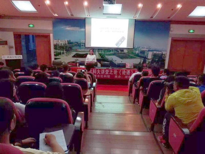 2018年6月26日晚,以“阅读经典,弘扬国学”为主题的社科大讲堂之论《论语》的修身养性在湖南文理学院图书馆多功能报告厅成功举办。本次讲堂的主讲人是民进会员、湖南文理学院讲师马连菊博士。大讲堂由学校图书馆副馆长王兴柱主持,常德市社科联副主席欧子成应邀出席并发言,阐释了社科大讲堂的宗旨便是为了弘扬传统文化。